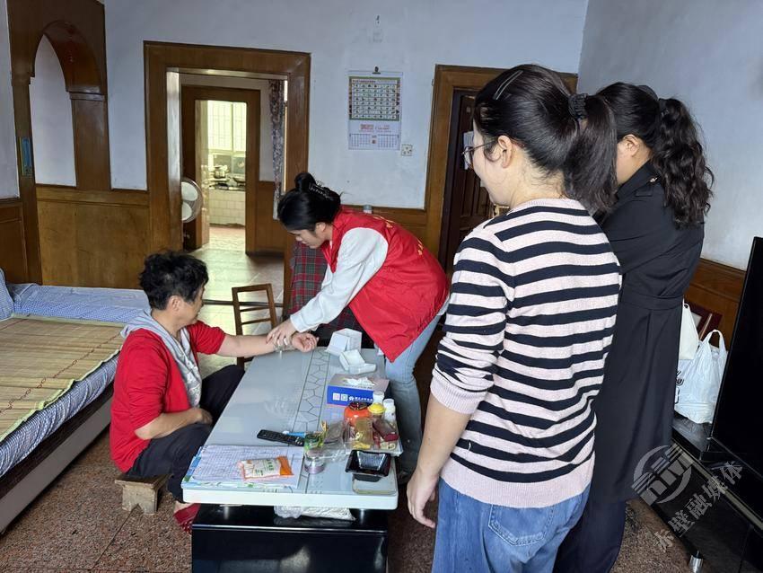 与此同时,医护志愿者有条不紊地为老人们测量血糖、血压,认真记录每一位老人的检测数据。针对部分血压、血糖指标偏高的老人,志愿者们耐心讲解日常健康注意事项,提醒他们按时服药、合理搭配饮食、坚持适量运动,用专业知识为老人的健康保驾护航。