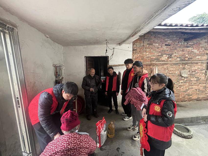2月5日,赤壁市赤马港街道杨泗庙村选调生携手村干部,组织返乡大学生、高中生组成“青春慰问队”,开展春节走访慰问志愿服务,为村内特困老人、留守老人送上米、油等生活物资及御寒衣物。