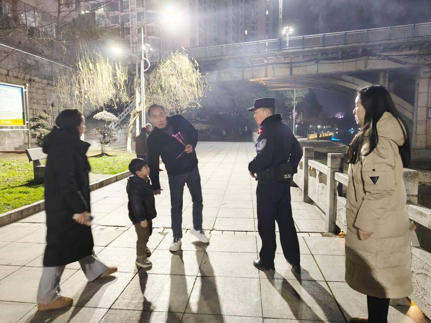 值守中,工作人员一边加强巡查管控,一边向居民宣传禁放限放规定,讲解指定燃放区域、时段及安全注意事项,引导群众文明过节、合规燃放。