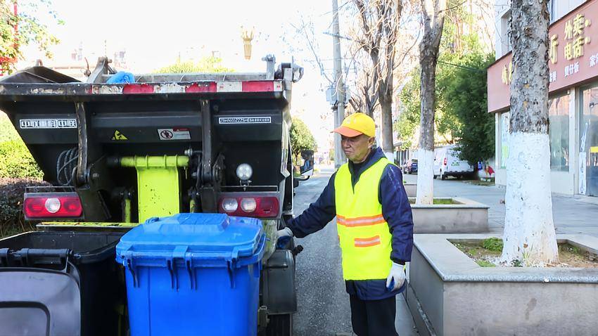 在龙翔路,65岁的垃圾收集车司机陈松林正熟练地收集转运生活垃圾。他负责5个单位和5个小区的垃圾清运工作,日均出车12趟,确保垃圾日产日清,从事环卫清运工作10余年。他说:“过年每天的垃圾量非常大,需要我们起早床晚上加班才能保证把垃圾清运完了再回去休息。 ”