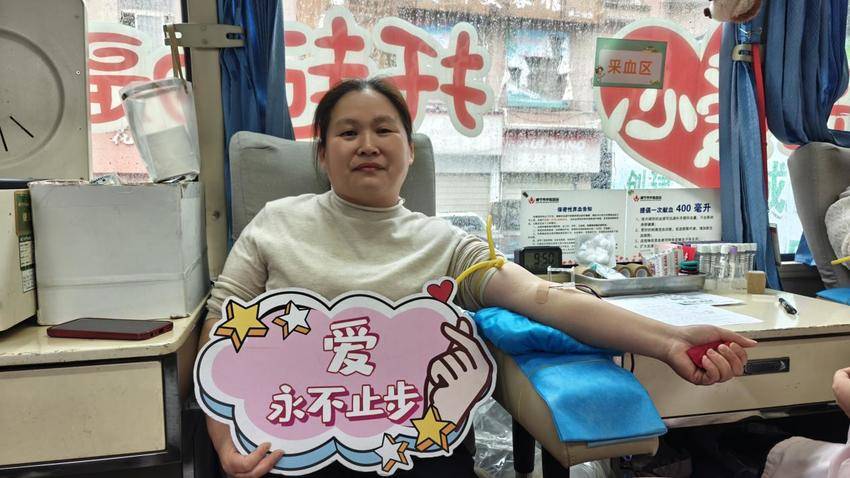 活动现场,社区干部们有条不紊地完成信息登记、血液检测等前期流程。参与人员中,既有初次献血、略显紧张却坚定前行的“新手”,也有熟练配合医护人员采血的献血“老兵”。他们手持“无偿献血最可爱”“爱永不止步”的标语牌,脸上洋溢的温暖笑容,成为献血车上最动人的风景。