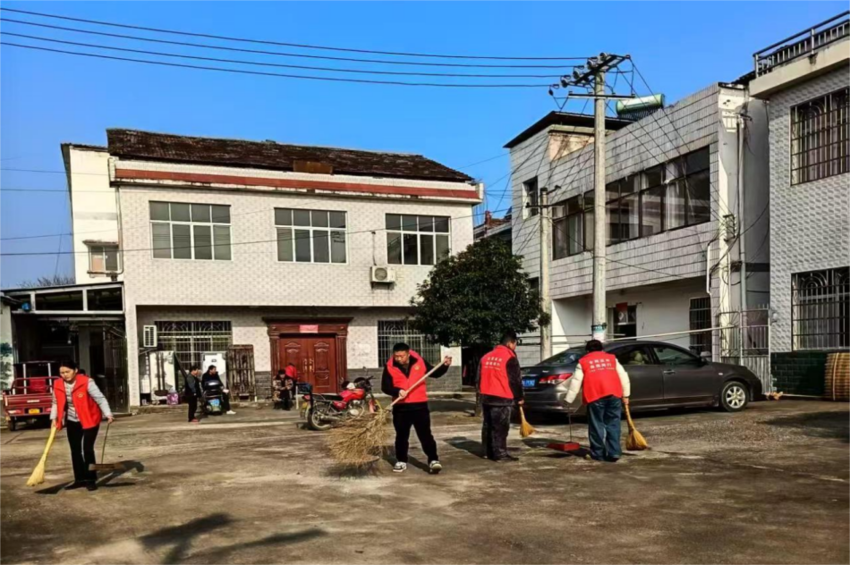 镇干部与村“两委”牵头冲锋,针对湾组通道、沟渠池塘、村级广场等公共区域开展“大扫除”,清理积存垃圾、杂草枯枝;同时引导村民主动参与,打扫房前屋后卫生,清理畜禽圈舍粪污与散落杂物。行动中,执法人员依法拆除乱搭乱建的简易棚屋,协助村民规范摆放乱堆乱放的农具杂物,对乱拉乱接的电线网线进行统一整理,让村庄空间秩序焕然一新。