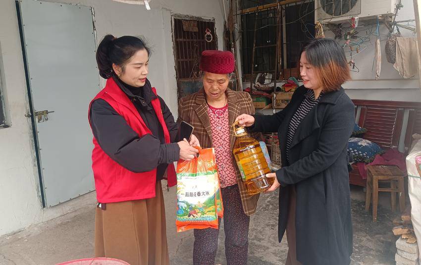 慰问组一行深入困难群众家中,与他们面对面拉家常、话近况,细致询问他们的生活情况和实际需求,将慰问金及米、油、鸡蛋等生活物资送到群众手中,用贴心的话语和实际的行动传递温暖。