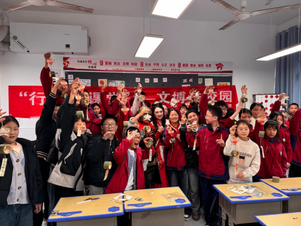 随后的趣味手工环节,同学们在志愿者指导下制作竹筒风铃和纸鸢挂饰,在动手实践中感受传统民俗魅力,加深对中华优秀传统文化的理解与认同,让文物故事、红色文化与传统民俗真正走进校园。